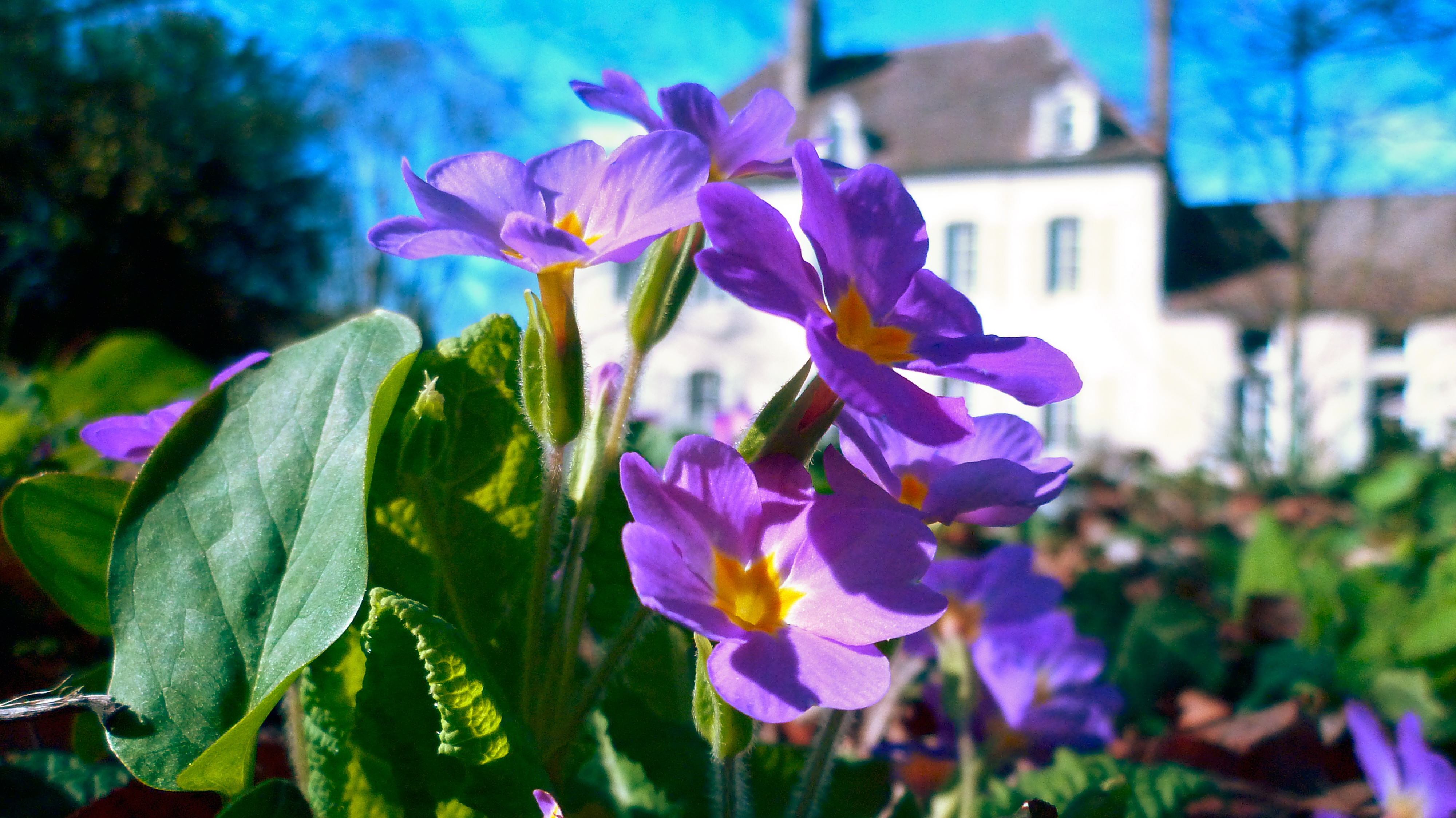 white, yellow and purple primroses have popped up, daffodils swing gracefully in the breeze.
