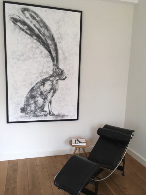 Initially, we went to Walker Bay to taste some of the best pinot noir and chardonnay. But we we came across this rabit with his long ears, at Leon Muller’s Art Thirst Gallery, we simply could not resist ! His cheeky air reminded us of our friends squirrels in the parc, at home, so we adopted him, on the spot ! We are particularly grateful to Leon, the artist, who agreed to part with his first painting of 2017 on the very morning the Friday Art Walk when it should have been starred.
