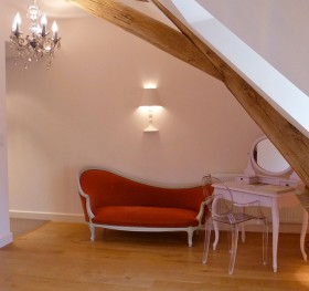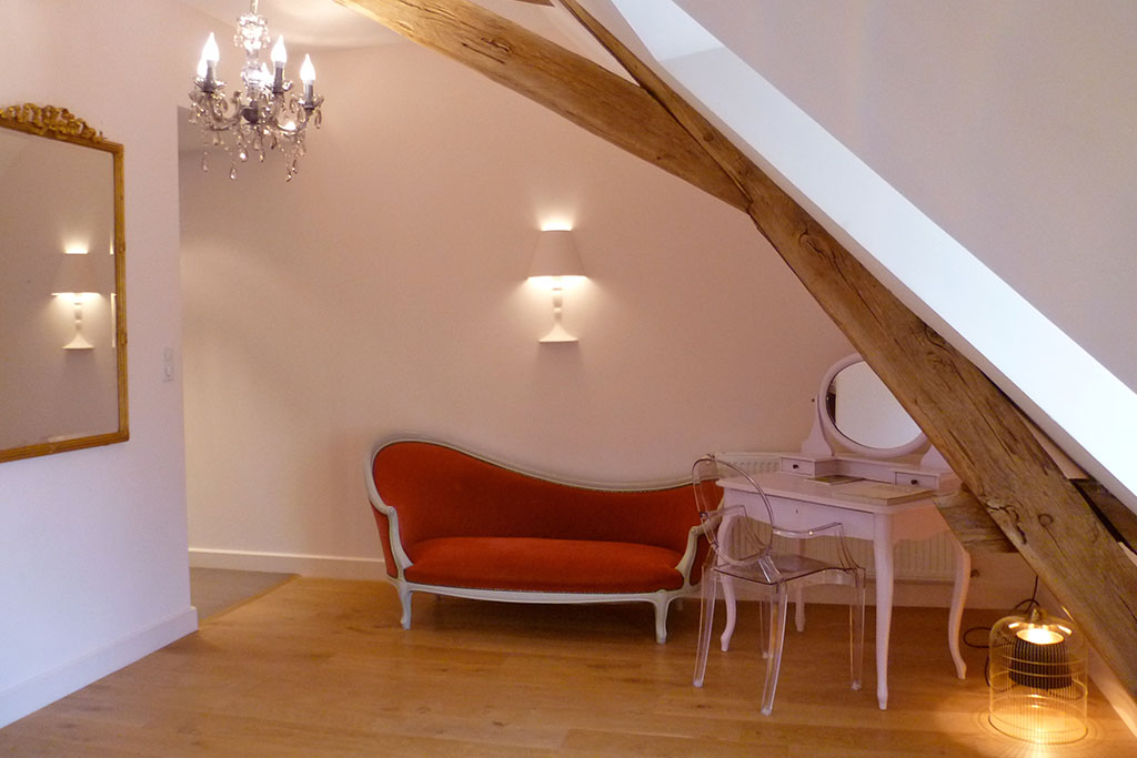 The charm of this Junior Suite is reinforced by oaks beams dating 18th century, contemporary of the famous author of "Philosophy in the boudoir".