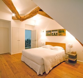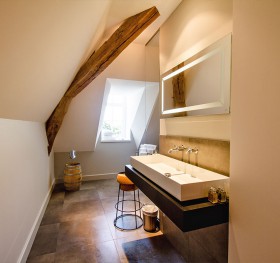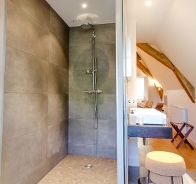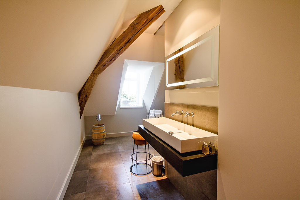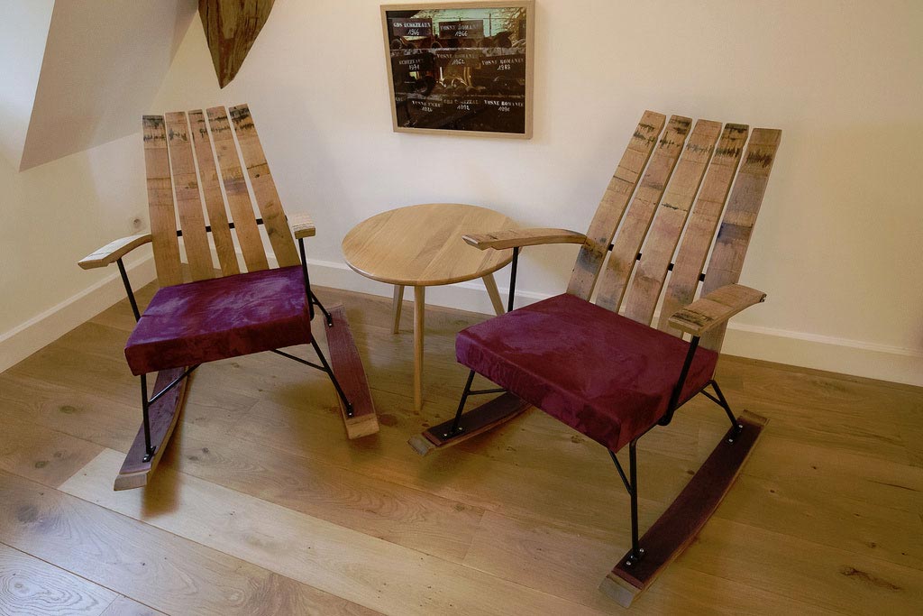 From the raw oak parquet to the wood beams dating back to the origin of the House, this suite, decorated in a very contemporary fashion, expresses the profound nature of Burgundy, up to the two rocking chairs made of authentic wine barrels!